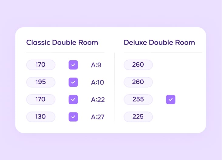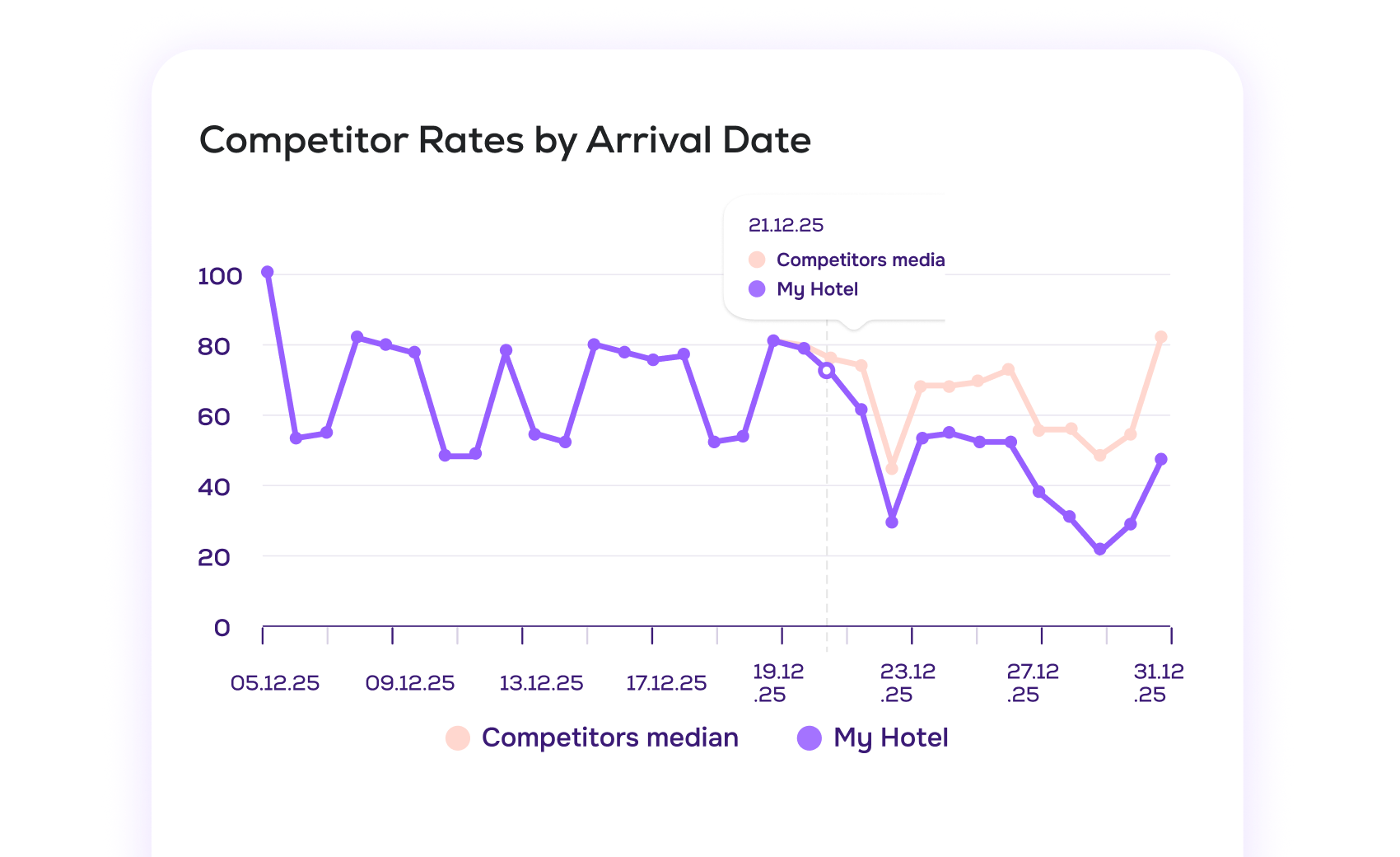 Η πλατφόρμα της hotellab παρακολουθεί συνεχώς τη ζήτηση και τις κινήσεις του ανταγωνισμού, διασφαλίζοντας ότι οι τιμές είναι πάντα ενημερωμένες, ακόμα και όταν είστε απασχολημένοι με άλλα θέματα