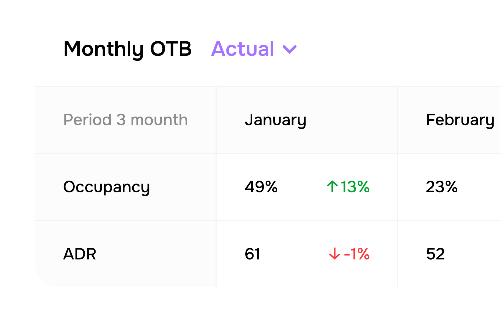 πληρότητα (occupancy), μέση τιμή (ADR), έσοδα ανά διαθέσιμο δωμάτιο (RevPAR), συνολικά έσοδα, NetRevPAR, προμήθειες, έξοδα, μικτό λειτουργικό κέρδος ανά διαθέσιμο δωμάτιο (GOPPAR)