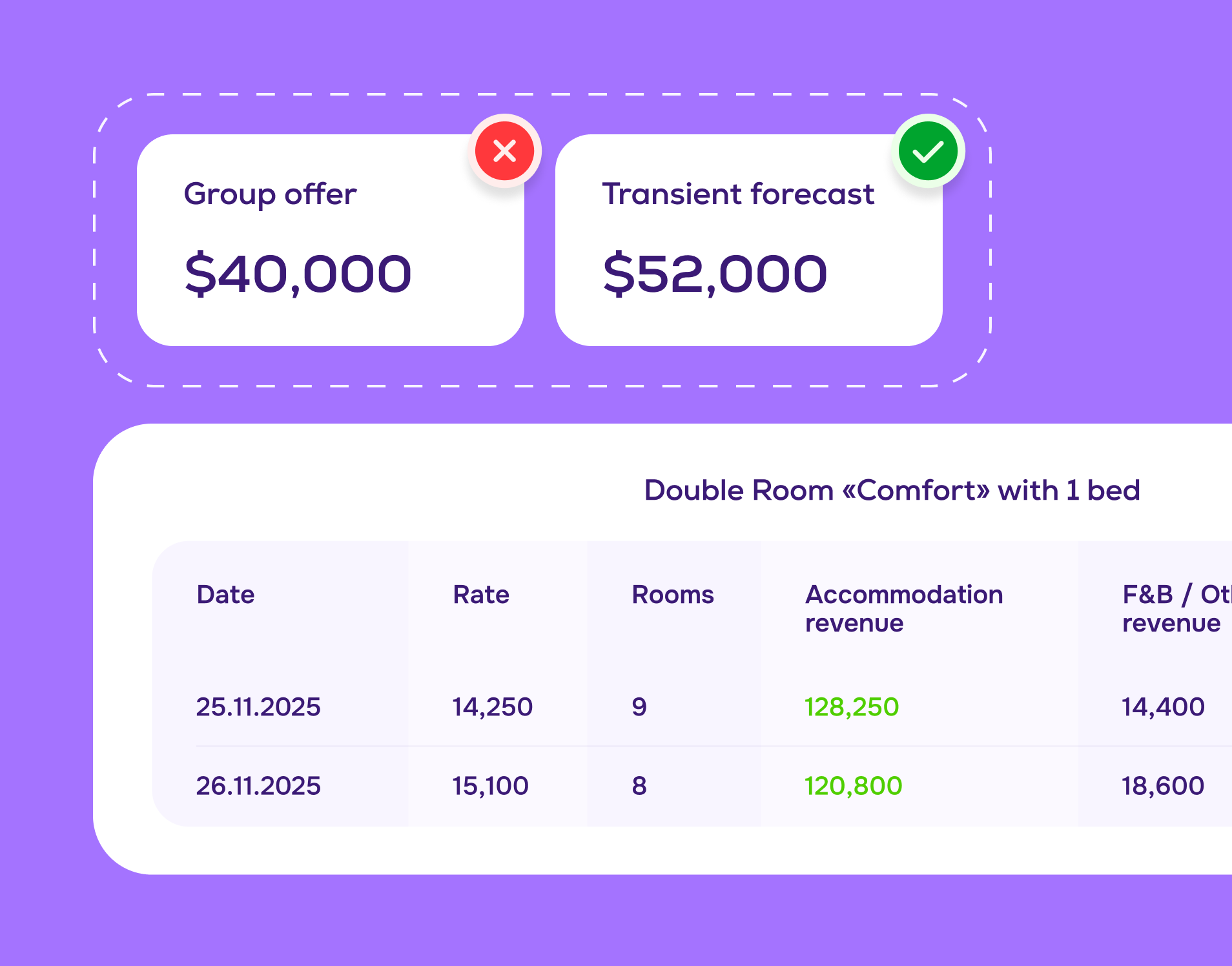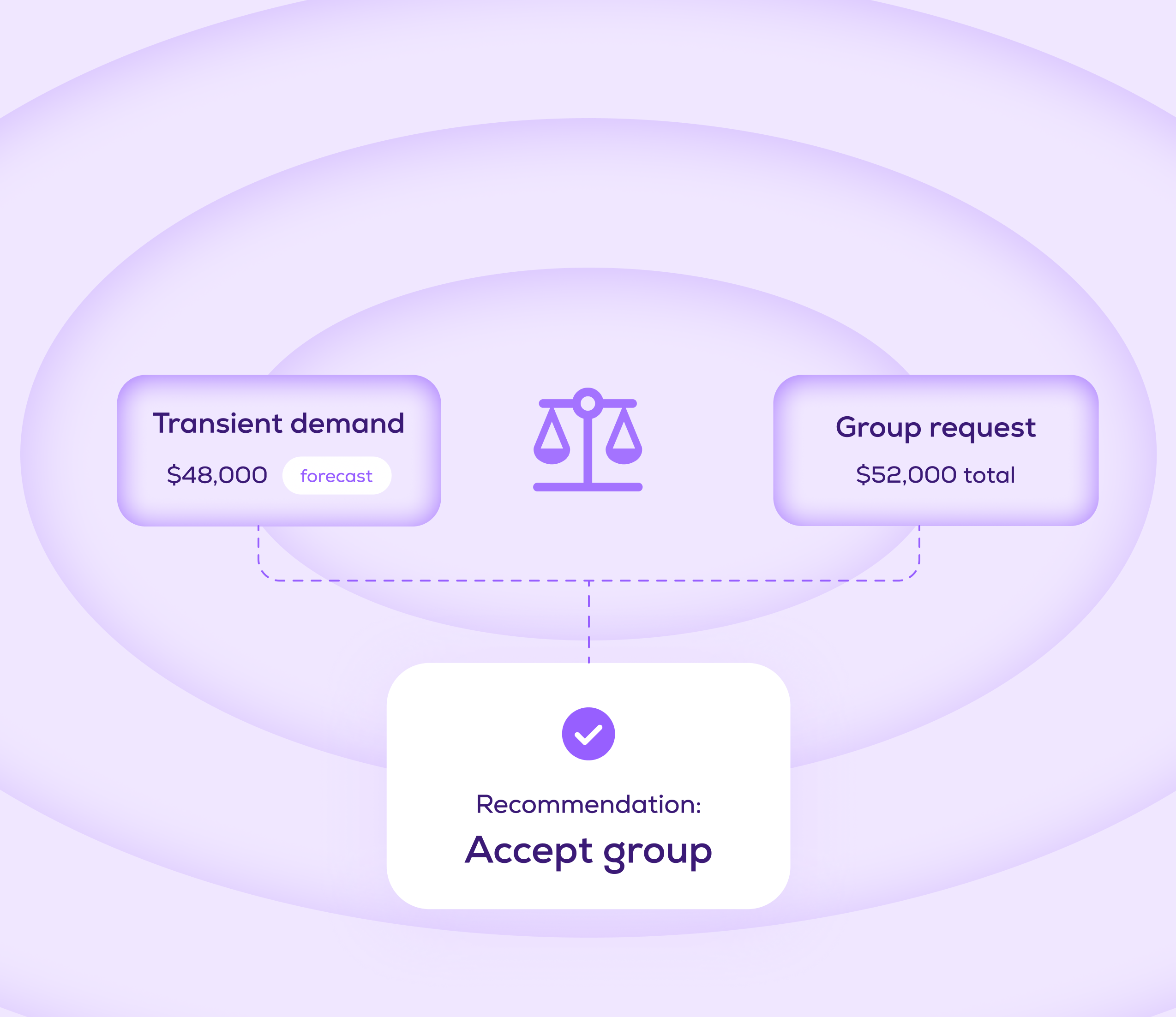 Σας δίνει τη δυνατότητα να γνωρίζετε πώς η αποδοχή μιας ομαδικής κράτησης μπορεί να επηρεάσει τη μελλοντική ζήτηση και τα έσοδά σας, ώστε να λαμβάνετε αποφάσεις βασισμένες σε δεδομένα.